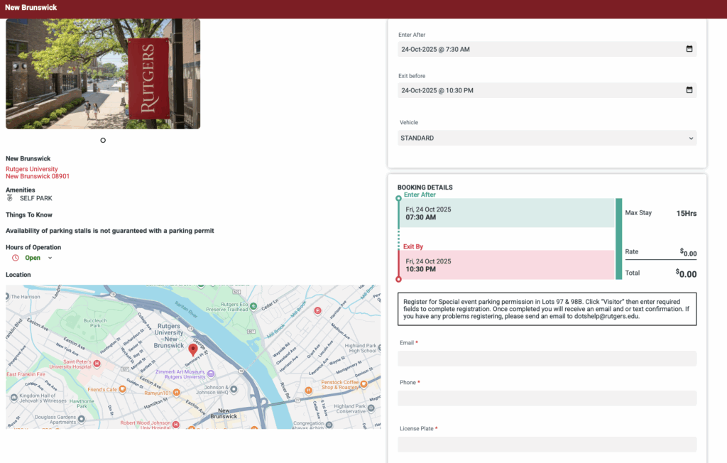 Parking Information: Please register for parking, parking is free to event attendees and allows parking in Rutgers lots 97 and 98B. Please let us know if you require handicap accessible parking.
